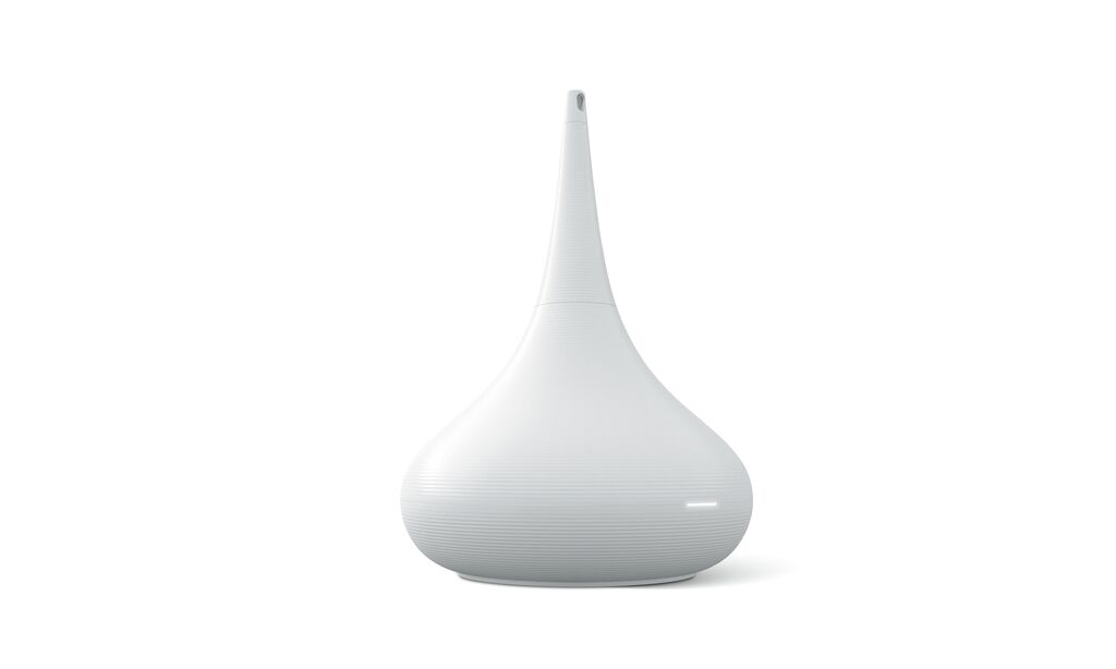 An idiosyncratic design based on a flower vase characterises this humidifier. The striped pattern, which is part of the brand identity, has a safety-relevant function in addition to its decorative one: it enlarges the surface of the device, thereby better dissipating operating heat and reducing the risk of burns when touched. To take sustainability into account, recycled plastic was used for the internal injection-moulded components.