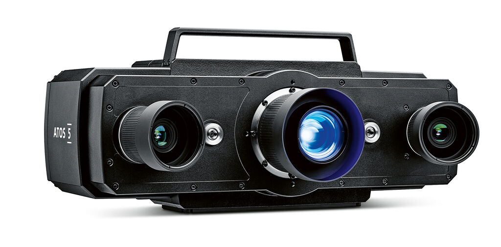 The 3D scanner ATOS 5 has been designed for metrology applications in industrial settings. The technologies of its predecessor have been improved with new design features like the dust- and splash-proof lightweight housing. The scanner differs from similar products on the market due to an enhancement of the stereo camera technology commonly used in such devices. This function accelerates the measurement of complex shapes. An AR feature combines reallife views with virtual inspection data.