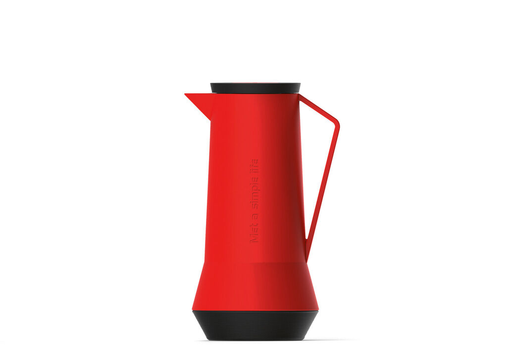 Inspired by minimalism, the designers of the Auchan vacuum jug opted for clear geometric lines. In addition, vibrant colours create an appealing contrast to the matt finish of the plastic mantle. In order to avoid scalding when serving hot drinks, the pressure mechanism in the lid allows controlled pouring. The jug keeps the temperature of drinks constant for a long time and is available in red, light blue, light green and white.