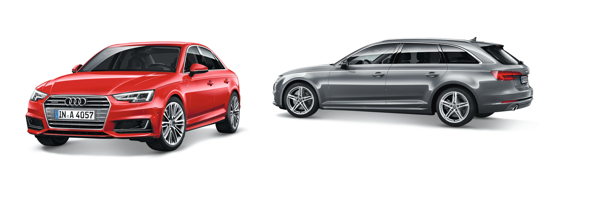 The new Audi A4 combines technology with a distinctive, balanced design which gives it a technoid, sporty elegance. A Singleframe grille and concise LED headlamps dominate the front. Horizontal lines, striking air intakes and the wrap-around bonnet further emphasise the car’s width. A circumferential shoulder line calms the side view. A special feature of the spacious interior is a band of air outlets which are aligned along the dashboard which combines elegant design and novel functions.