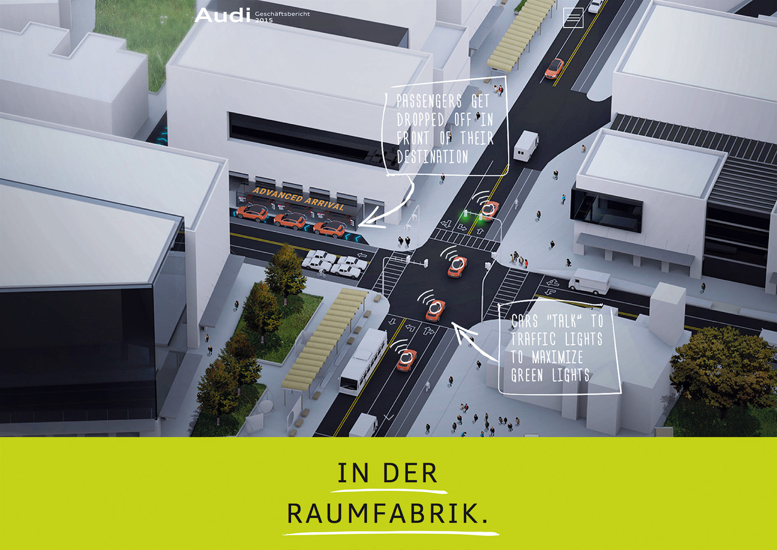 The Audi annual report 2015 focuses on the central theme of “Tomorrow. Now!” to place experiencing the brand centre stage. Consisting of a magazine and a financial section, it is used not only as a pure reporting tool but also employed internationally as a means of brand communication. The aim is to communicate that Audi offers its customers progressive solutions that are always “one step ahead”. This progress through technology was also to feature on a responsive website for customers to experience across various media. The topics and design of the digital version are modelled on the print version of the annual report and enhanced by additional content.