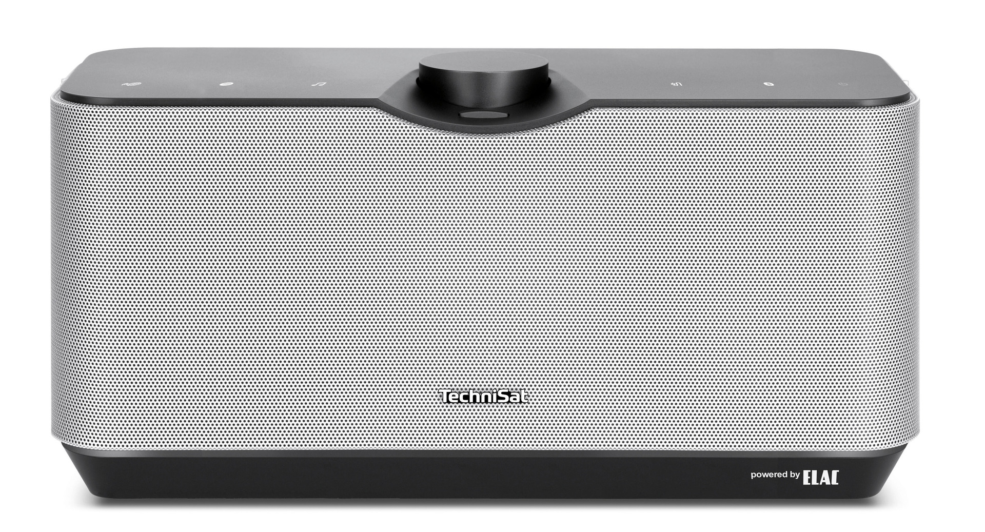 The Audiomaster MR3 is predominantly defined by two artfully curved metal grilles. They enclose the inner wooden corpus and are only separated from each other by a single fine strut for absorbing powerful sound vibrations. The hole size in the grilles ensures optimum sound, on the one hand, and enables a subtle seethrough effect, on the other. The purist design is rounded off by control elements embedded in a recess along the top.