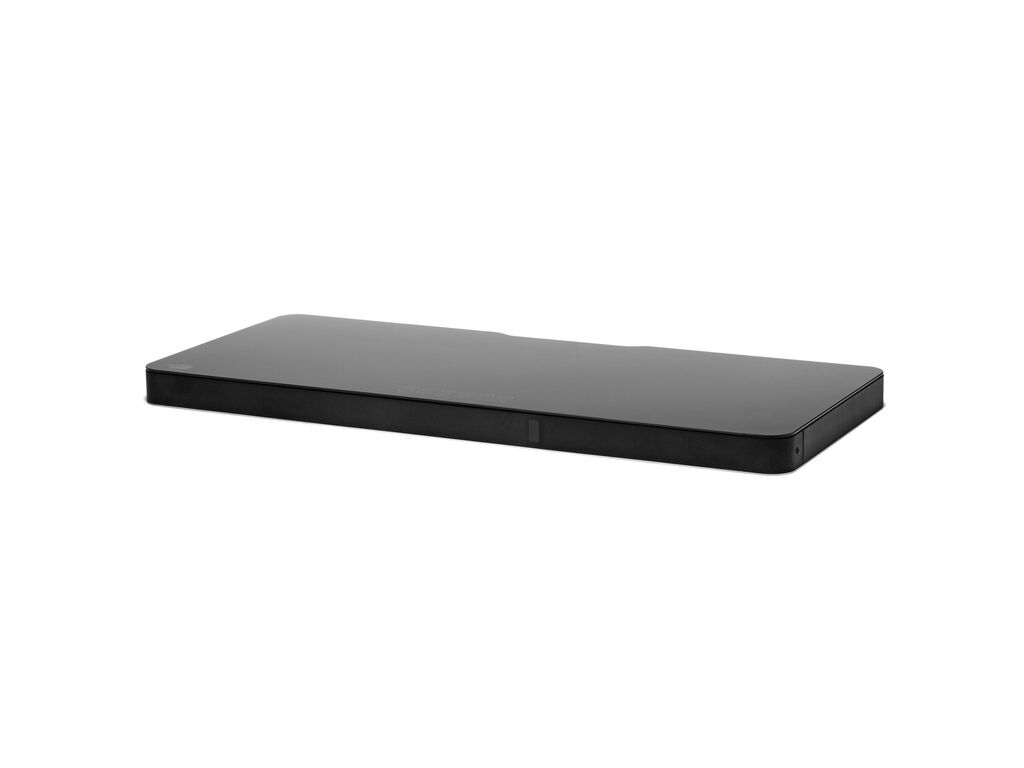 The design of the speaker system is both minimalist and user-friendly, as is demonstrated by the easily accessible control elements and the swivel base.