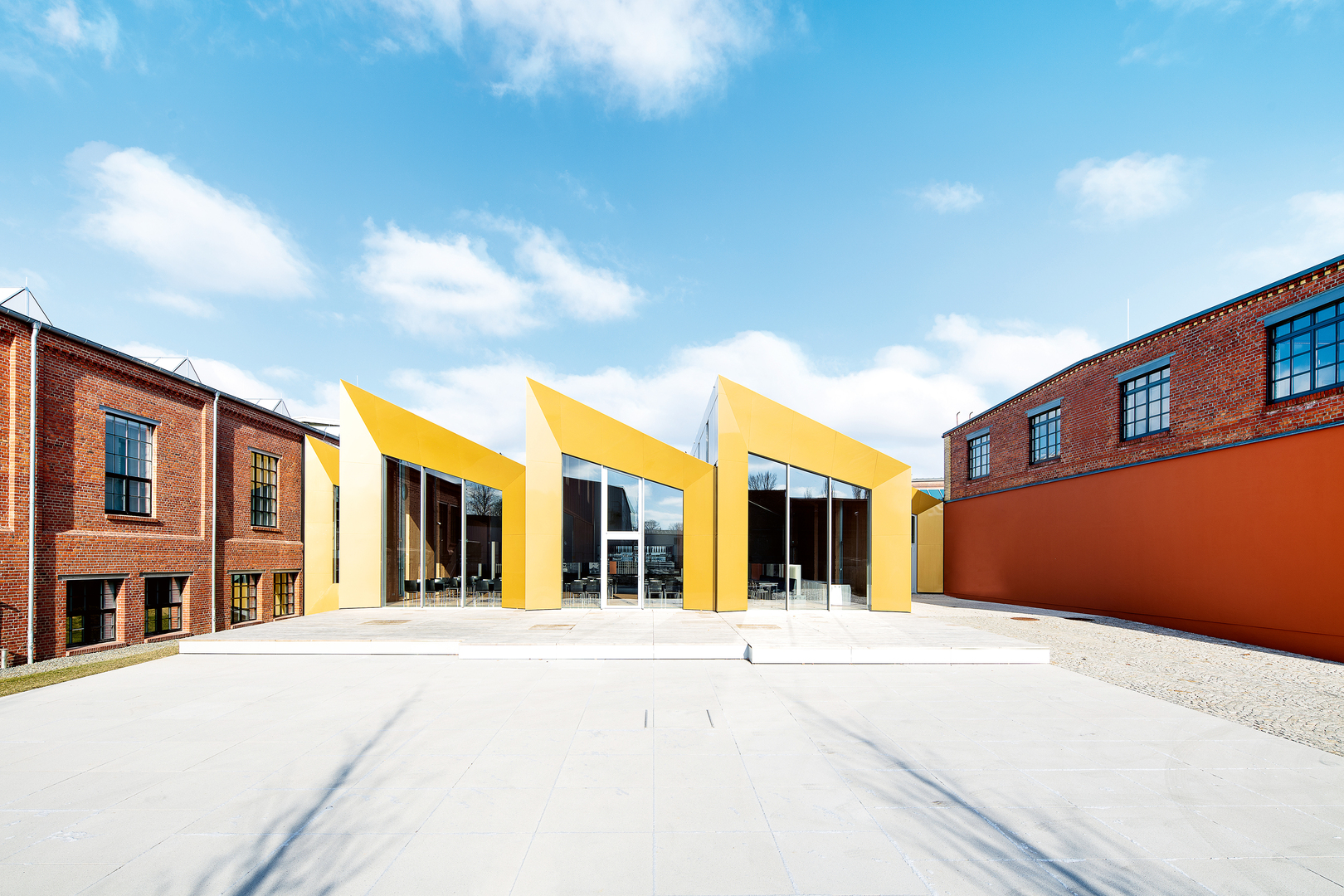The extension of the August Horch Museum in Zwickau, Germany, was planned with the elegance of Horch vehicles in mind. Located on the former factory premises of the Audi and Trabant brands, a restored historic production hall offers expanded exhibition and event space. Complementing and connecting the restored production hall with the already existing historic ensemble, a new interposed building was erected that interprets the industrial surroundings. Its architectural language is inspired by the motifs of high-quality design and serial fabrication in automotive production.