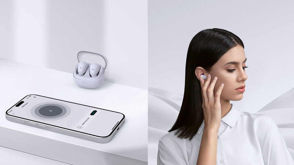 The AUKEY Move Vibe in-ear headphones are comfortable to wear for long periods thanks to their compact size, ergonomic fit and low weight. The semi-transparent charging case allows the bean-shaped design of the earbuds to be seen intuitively – opening the box is reminiscent of breaking open a pod. The organic look and soft colours appeal particularly to a young audience and underline the everyday, user-friendly character of the product.