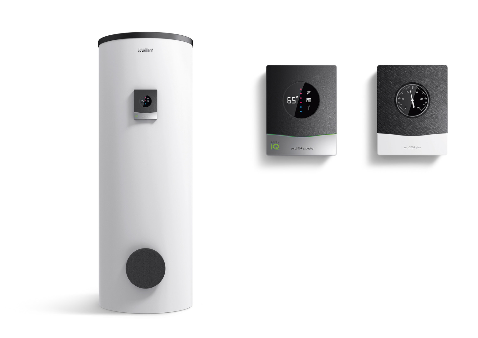 The auroSTOR/uniSTOR plus/exclusive product family consists of indirect hot water cylinders characterised by a clear design along with user- and eco-friendliness. With capacities of up to 500 litres and variable configurations, they enable the storage of excess energy as thermal energy produced by solar systems or heat pumps. The clearly arranged user interfaces display important figures such as the water temperature, as well as information about the charge level and system connectivity for the LED variant.