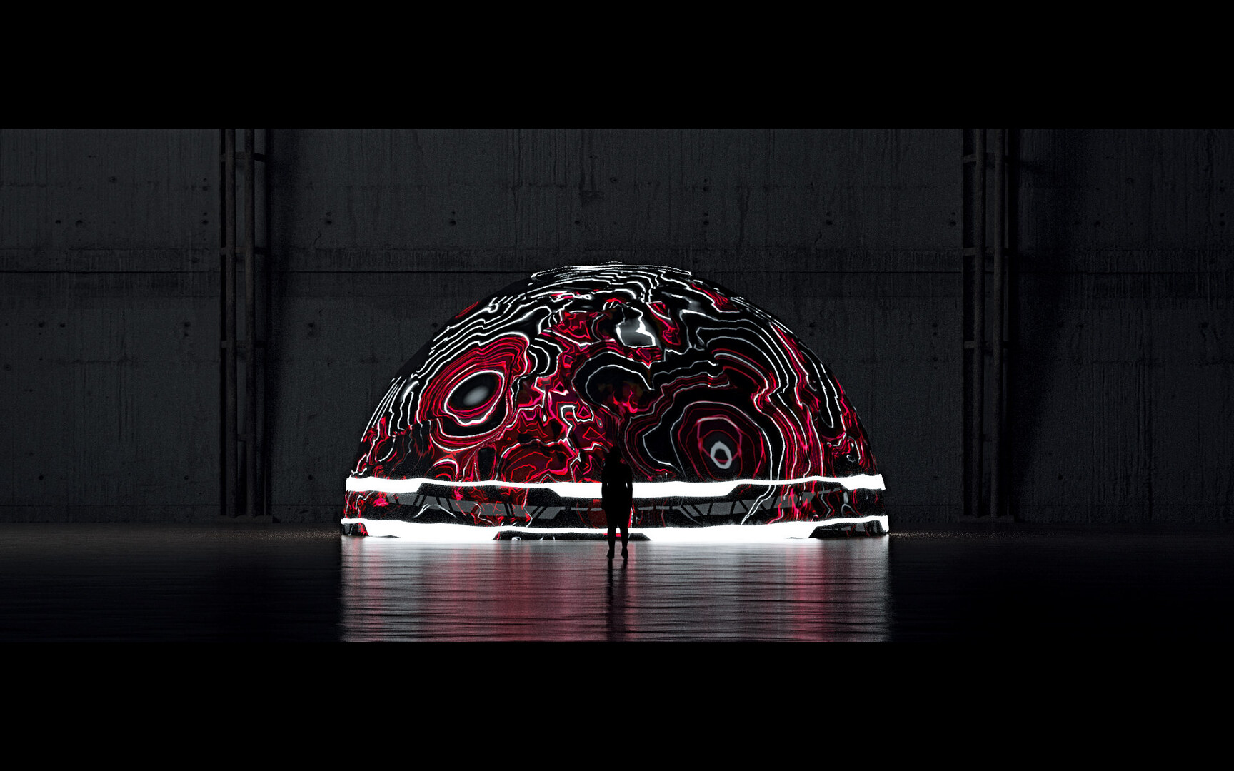 In this installation, an interstellar future is staged by providing a temporal and spatial experience that integrates art, science and technology. It turns into a trans-galactic exploration where visitors have the chance to discover and gain knowledge about the structure and properties of matter. The name of the exhibition, “AVA V2”, is derived from the surface-volume shape coefficient. Inspired by the iconic dome structures of Buckminster Fuller and particle physics, the first version of the performance was screened in Paris. The installation reflects the changing image of powder characterisation using particle size analysis and cosmic rays.