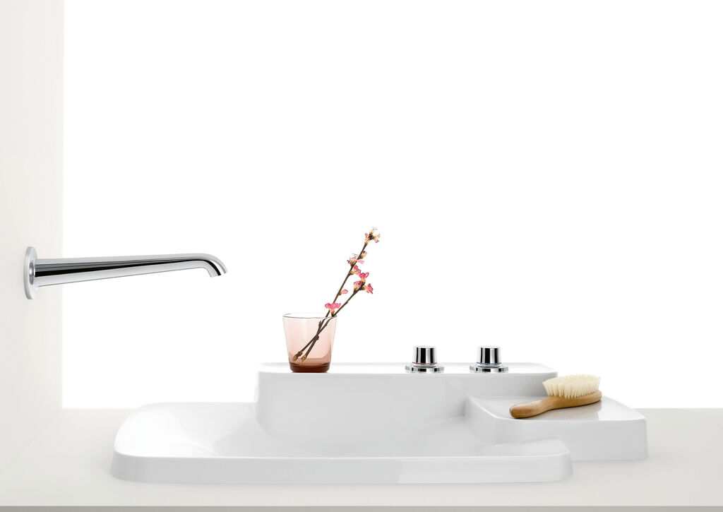 The Axor Bouroullec collection is modular in character. The almost 80 elements can be combined in a myriad of ways, thus making it possible to design a very personal bathroom that goes beyond the purely functional. It is not a matter of getting it right or wrong, but rather of discovering what sort of bathroom you really want. Washbasins, bathtubs and fittings can be freely combined; holes can be bored into the surface surrounding the washbasins and bathtubs to allow for individual mounting of fittings. The gentle, flowing lines bolster this freedom of choice and will also harmonise with existing bathrooms and styles.