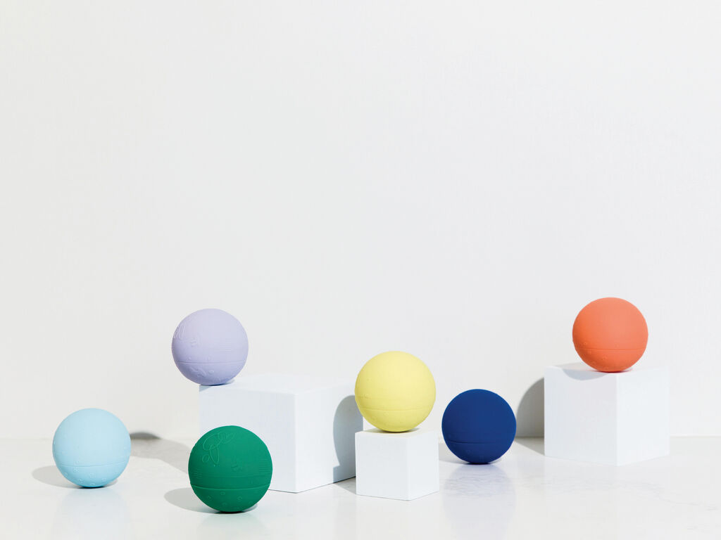 b is for ball was developed for children from six months onward. Made entirely from food-grade silicone, the product functions as a teething ring, bath toy, stacking toy and sensory object. When opened up, it can also be used as a stamp or as a container for experimenting or exploring scents. It is made of dishwasher-safe material to prevent mould growth and simplify the cleaning process. The plastic-free toy is designed for a long lifespan and thus makes an excellent alternative to throw-away toys.
