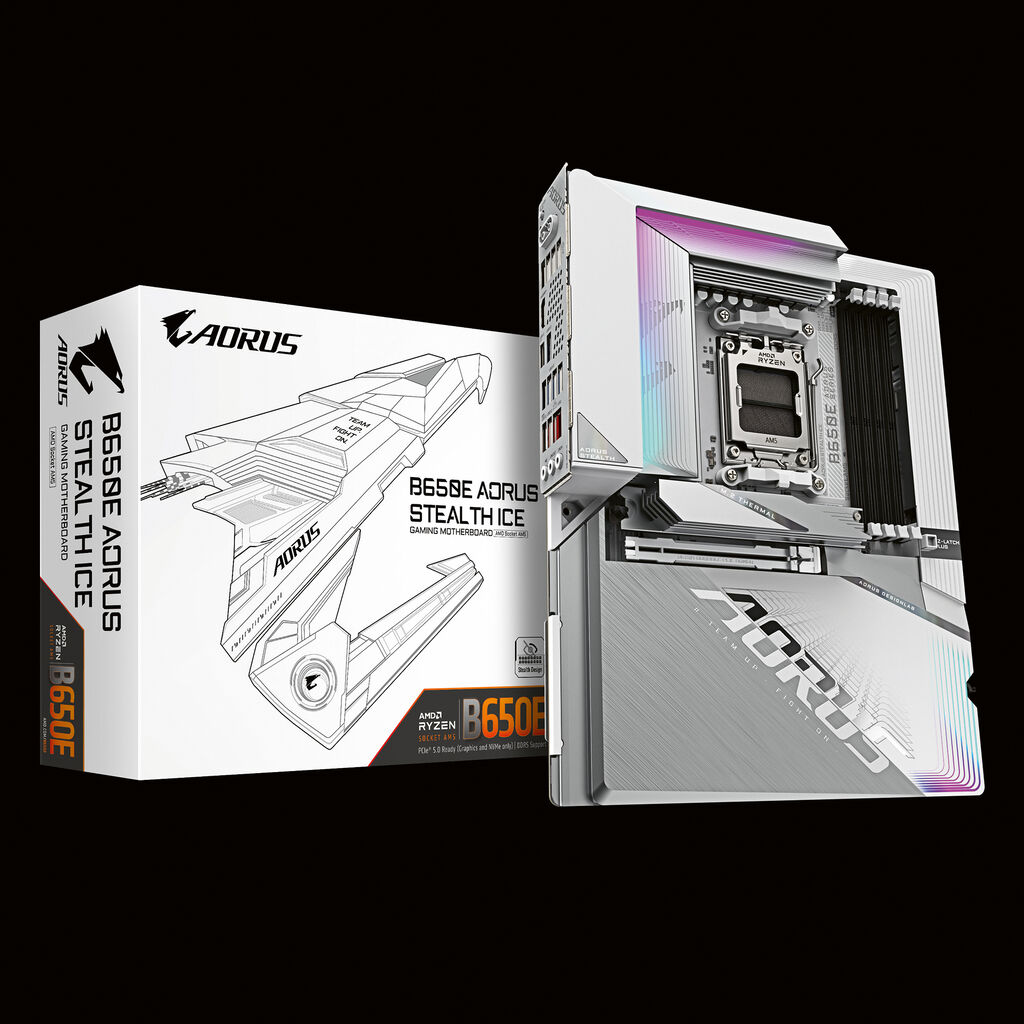 The user-friendly overall concept of the B650E AORUS STEALTH ICE motherboard combines a clear structure, functional features and a robust design.