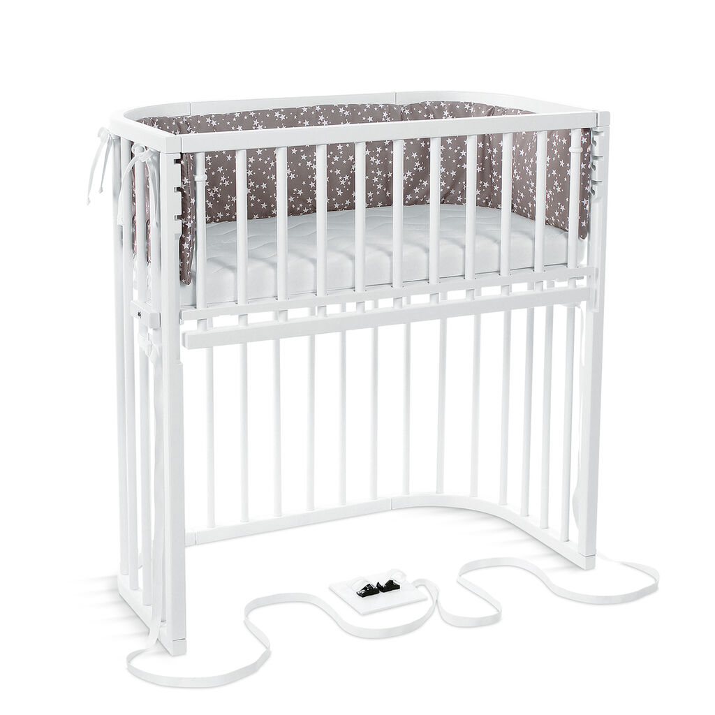 With its special design, this co-sleeper is optimally coordinated to box-spring beds, so that the baby bed is flush with the parents’ mattress in terms of height.