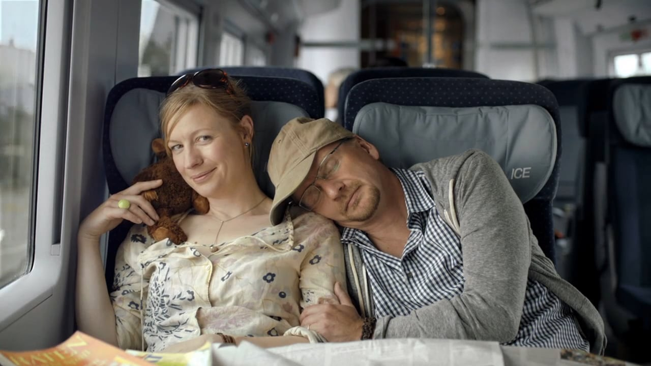 Is there a nicer way to start the family holiday than an endless, exhausting drive on the motorway in a fully packed family van? The little darlings tired and whining on the back seats, and the parents sitting in the front, annoyed and staring straight ahead. The answer to this ironic question – that holiday travels can easily be comfortable and relaxing with the German Rail Family Special ticket – is communicated by this commercial in a highly original manner: a boy in the back seat of a car is drawing a picture of his family. Suddenly he looks up, turning to his sister: “Tell me, do you remember what they look like from the front?” He has forgotten, seeing them only from behind. The next shot shows the two kids again, sitting next to each other, eating ice cream and joking around – in a four-seat compartment of an ICE, sitting relaxed opposite their parents, looking at their faces. The commercial thus aims to convey that travelling by rail is not only more comfortable, it enables the family to spend the journey time together and is therefore more fun.
