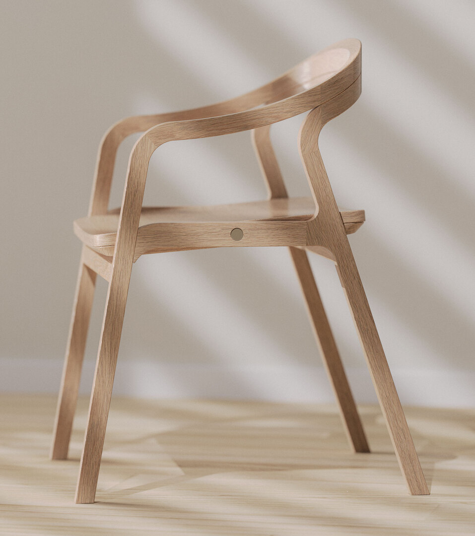 Compared to standing, sitting down on a chair puts twice as much pressure on the lower back, which is a major cause of lumbar disc disease (herniated disks). To help avoid sitting in a slouched for an extended period of time, the Bada chair intentionally provides sweet discomfort by encouraging the user to change positions regularly and maintain proper posture. The chair’s seating surface is designed with a slight incline, giving the user little choice but to correct their sitting posture. Its entire form is designed so that the curves meet on purpose to represent the movements of rotating, sloping and sliding.