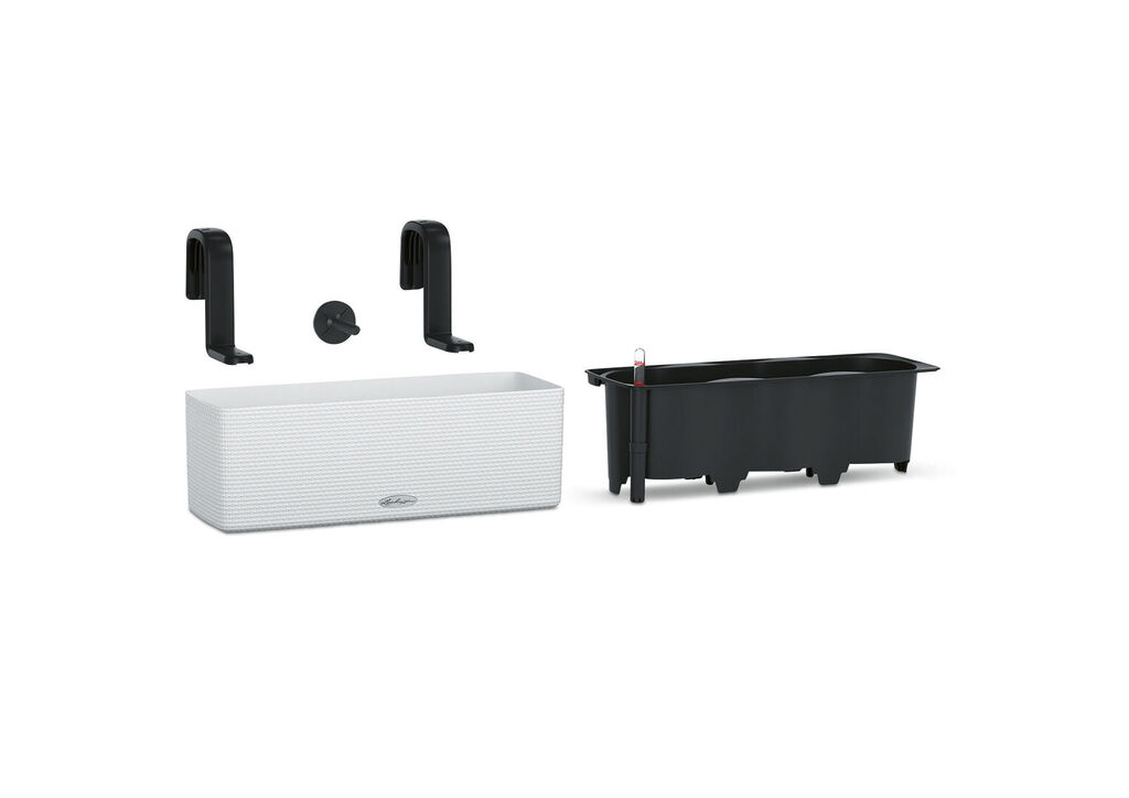 Balconissima is available in three colours and offers space for up to three grow pots with a maximum diameter of 12 cm, eliminating the need for repotting. Thanks to the wick irrigation system with a 1-litre reservoir, flowers and herbs stay freshly supplied with water. The drain plug prevents water logging and ensures the necessary drainage of excess rain water. The integrated balcony box brackets guarantee a secure hold and can be hung easily onto the balcony railing.