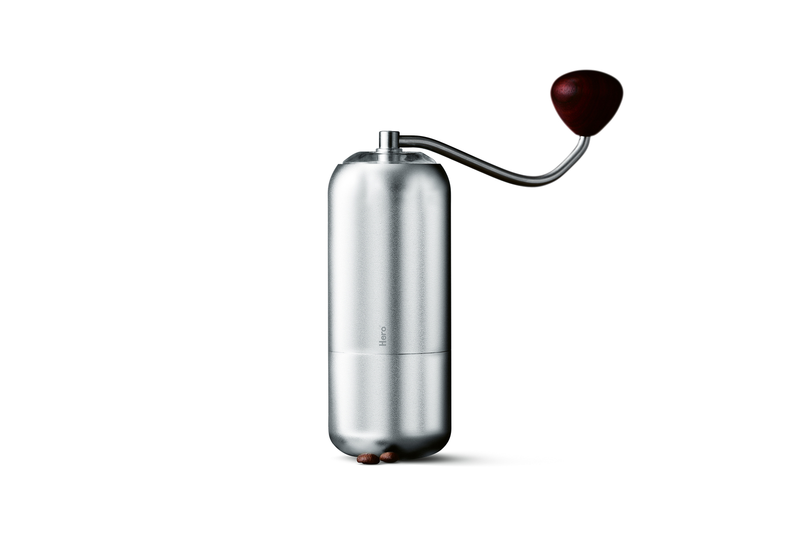 Due to the choice of material and shape, this coffee grinder is truly a pleasure to hold. A beautiful detail is the visible grinding process involving the rotating “dragonfly wings”.
