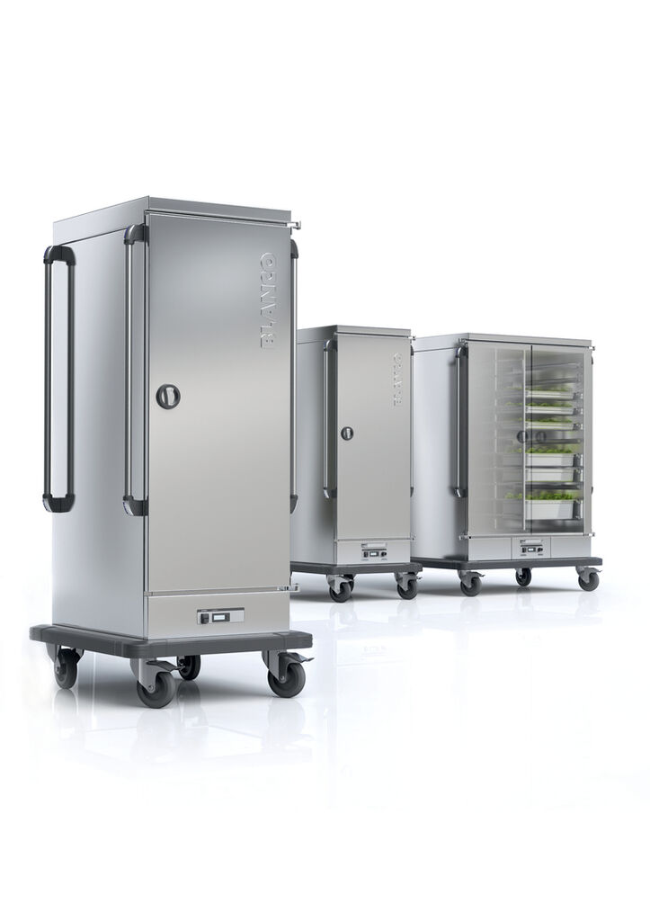 An elegant stainless steel casing encloses this banquet trolley, the technical equipment of which allows keeping gastronomy food cold or warm at the ideal temperature. A large-scale brand logo punched in stainless steel is intended to support the puristic appearance and to create easy brand recognition beside superior value. With a focus on ergonomics, the design principle provides for much flexibility when charging the interior as well as maximum ease of use and safety for the user.