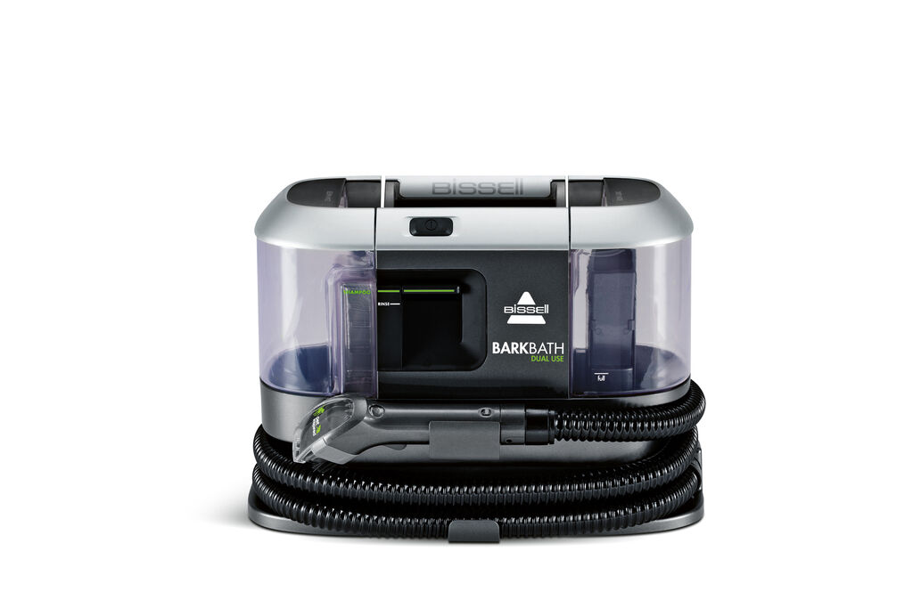 BARKBATH Dual Use is a portable 2-in-1 dog wash and deep cleaner plus dryer particularly aimed at dogs. It allows for quickly and simply washing the pet from the skin up. Spray nozzles reach beneath the fur and cleanse the skin with shampoo. Soft suction pulls dirt and water into a separate tank so that the dog becomes cleaner compared to conventional bathing and immediately dry again. The device is quiet and versatile in use. It features also individual grooming clips matching the fur type.
