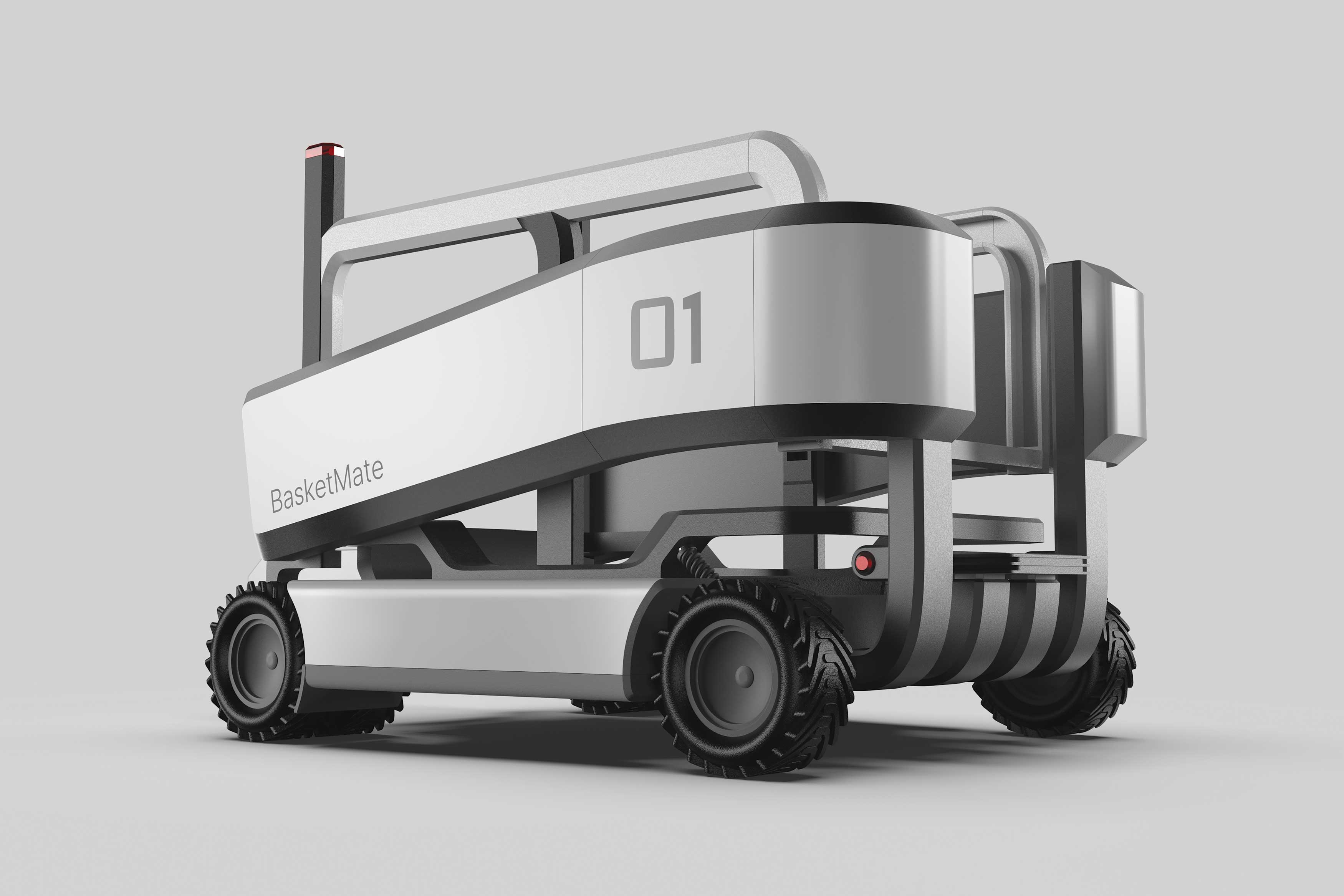 Basketmate is a robotic system that streamlines orchard logistics, from fruit collecting to warehouse storage and distribution. It features a front-mounted forklift-style basket securing mechanism, a variable rail system for internal storage, and a rear platform that mirrors the grooves of fruit baskets. This solution optimises space and mobility, boosts productivity, and represents a significant leap forward in agricultural automation.