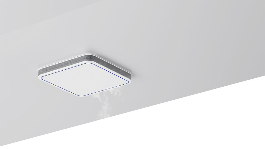 The Bathroom Exhaust Fan is a flush-mounted bathroom fan with integrated Bluetooth speaker. The device is characterised by its flat design with rounded edges and precise lines. Thanks to cloud connectivity, the fan’s performance and speed as well as music playback can be easily controlled using a voice assistant or an app. The all-round, finely perforated intake opening is seamlessly integrated into the white metal casing and, together with the quietly operating radial fan, ensures effective ventilation.