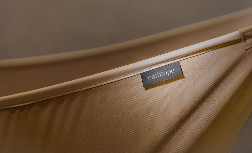 The bathtope fabric bathtub is part of a shower system of the same name, whose cabin ensures the stability required for use with the aid of an integrated support structure. The concept and design were inspired by traditional Japanese bathing culture and the art of origami. Made of skin-friendly polyurethane film and PET fabric, the bathtope bathtub is available in a range of colours. When in use, the tub is attached to sturdy wall brackets with four loops. Afterwards, it can be hung up to dry to save space.