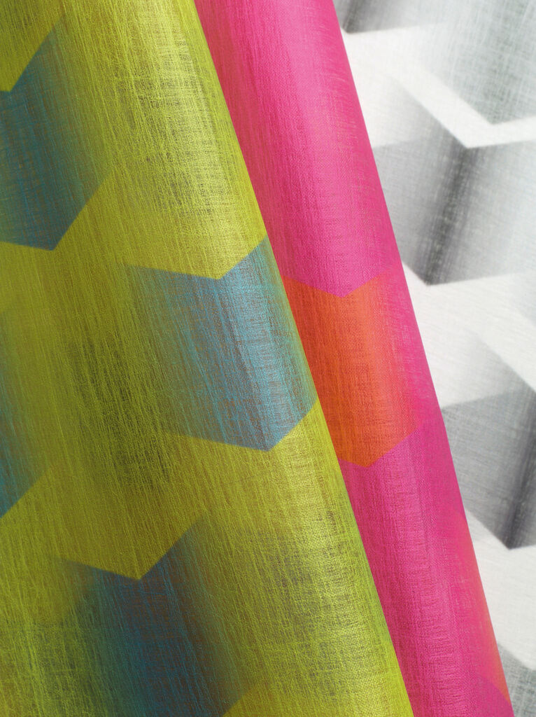 The 3D looking decorative fabric Batumi CS is a transparent Trevira CS fleece. Its colour intensive print design emphasises the 3D effect of the depicted cubes by harmonious colour gradients. Batumi CS was conceived as an experimental crosser between textile and paper. Visually as well as haptically, it exhibits appealing product properties. The fabric is available in various colour versions.