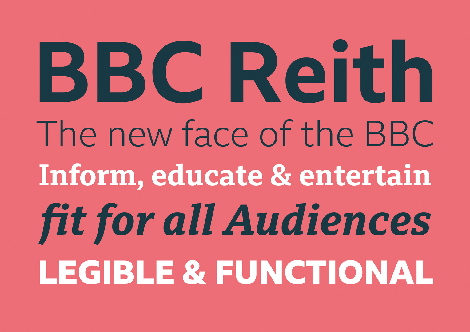 Fonts are an important part of visual communication. This is why the BBC commissioned a brand-new suite of fonts that would respect the British typographic tradition yet still look and perform like a contemporary type system. The result is a font that meets the demands of 21st-century usage and transports both an identity and a message across any medium in an accessible way. The BBC Reith family consists of coordinated weights in both sans and serif, plus matching italics for each. The font has a clear yet understated appearance and allows for different messages to be communicated with an appropriate level of sensitivity.
