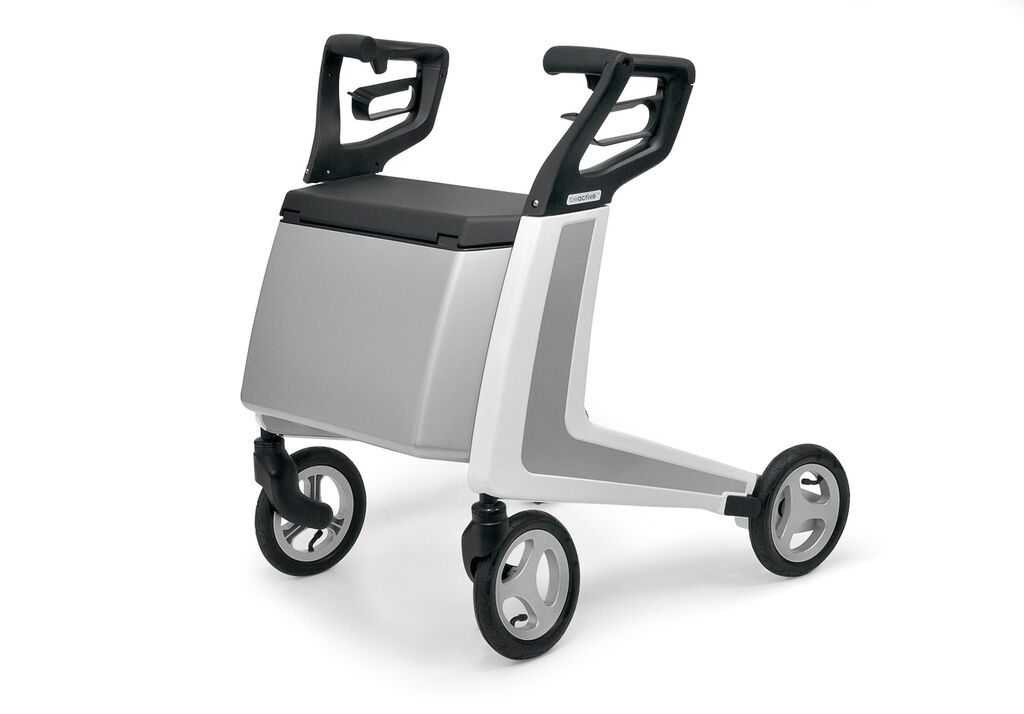 beactive+e is a rollator that can also be used with an electric drive to facilitate mobility. It thus helps elderly people who have restricted capacity of movement, especially when walking up hills. The rollator features several speed levels. The handles offer two grip positions, forward and sideways, so as to prevent fatigue. Moreover, the handle height is automatically adjustable at the press of a button.