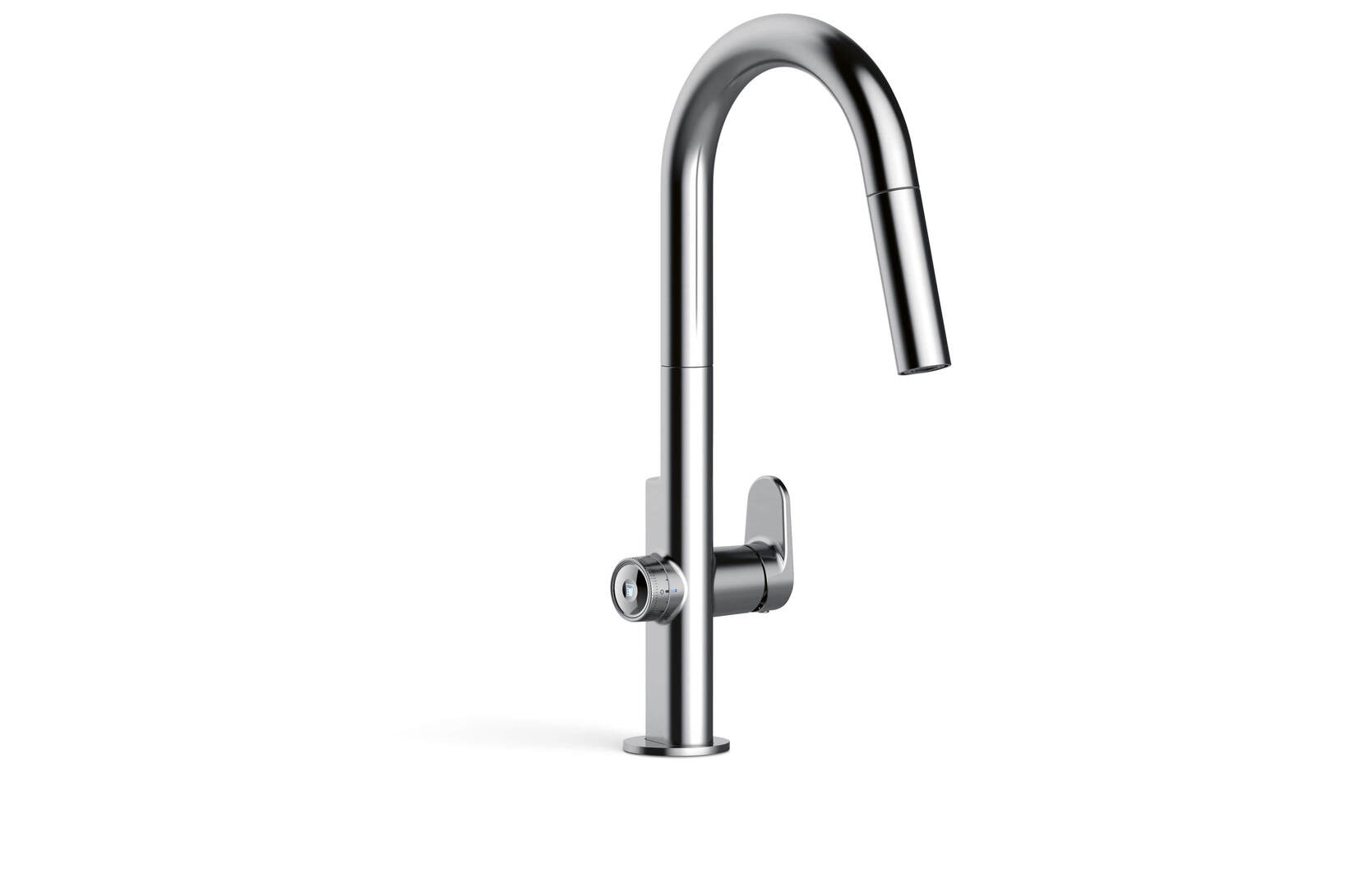 The special feature of the Beale MeasureFill kitchen tap is its measuring function: the quantity of water can be set in advance and is delivered precisely – from 4 oz or 1 / 2 cup to 40 oz or 5 cups, equivalent to 120 ml to 1.2 litres. When the measuring function is used, a blue LED backlights the display on the handle. Thanks to the touch-on / off function the user only needs to touch the display to operate the tap. When on continuous flow mode, it switches off automatically after five minutes.
