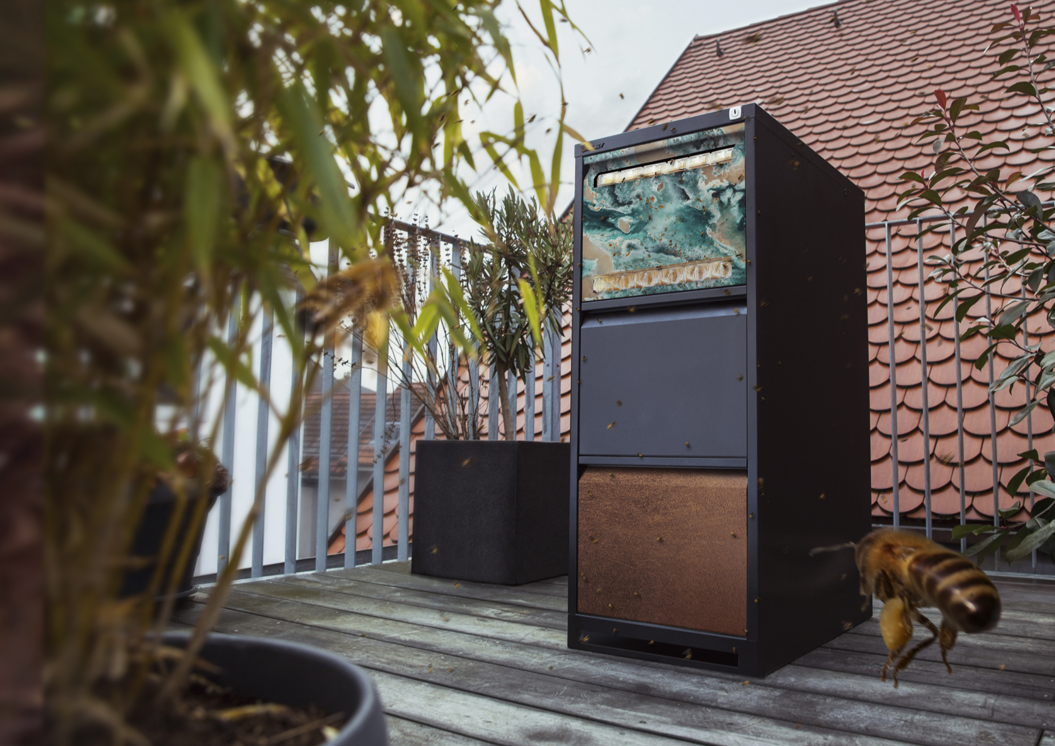 Bees form an important part of the eco-system, but more than 50% of the bee population has already become extinct. Artificial pollination is nowhere as healthy, efficient nor as good as the natural method and therefore, the little helpers need some care and help. Beesley gives disused filing cabinets a new lease of life by turning them into a home for bees. The metal construction provides a longer lasting alternative to the traditional beehive. Furthermore, the ease of use has been rethought and redesigned to fit an urban lifestyle. With this product, it is much easier and cleaner to keep bees. No beekeeping suit, bee smoker or centrifuge is needed and hence, less time is required for maintenance. Urban surroundings have proven to be healthier for bees due to the larger ecological diversity they provide and reduced usage of pesticides. Beesley's design is natural, individually customisable, beautiful and blends perfectly into the cityscape. It targets a design-orientated audience with ecological awareness, who would like to produce and harvest their own local honey on tap while helping to preserve the dwindling bee population. Furthermore, a reduction of waste and use of natural resources can be achieved.