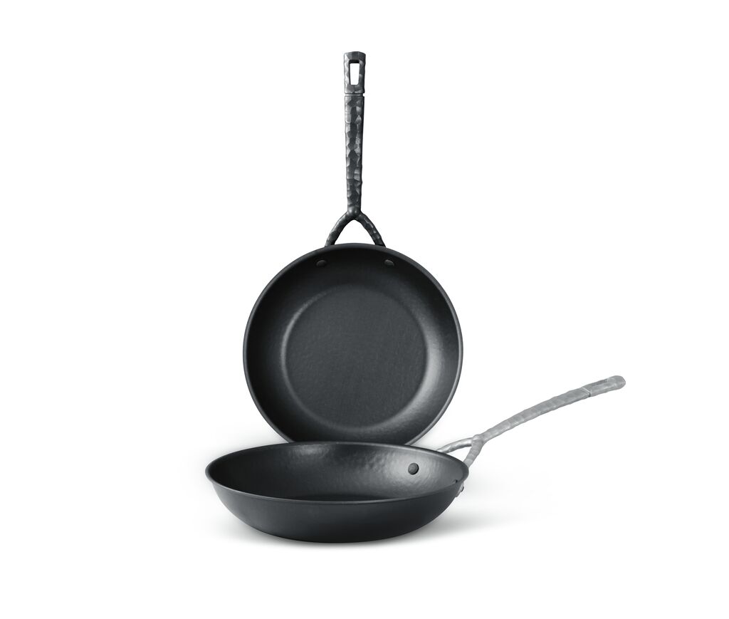 Following in the footsteps of the traditional art of blacksmithing, Beka Artist has been made of raw, crafted metals. The pattern hammered into the metal creates an original aesthetic that characterises all the surfaces – from the non-slip handle to the rivets and the body of the pan. The uneven surface of the pan helps to ensure optimal contact with the food being fried. Through the fusion of cooking oils with the steel pan, a patina will gradually form over time and act like a natural coating.