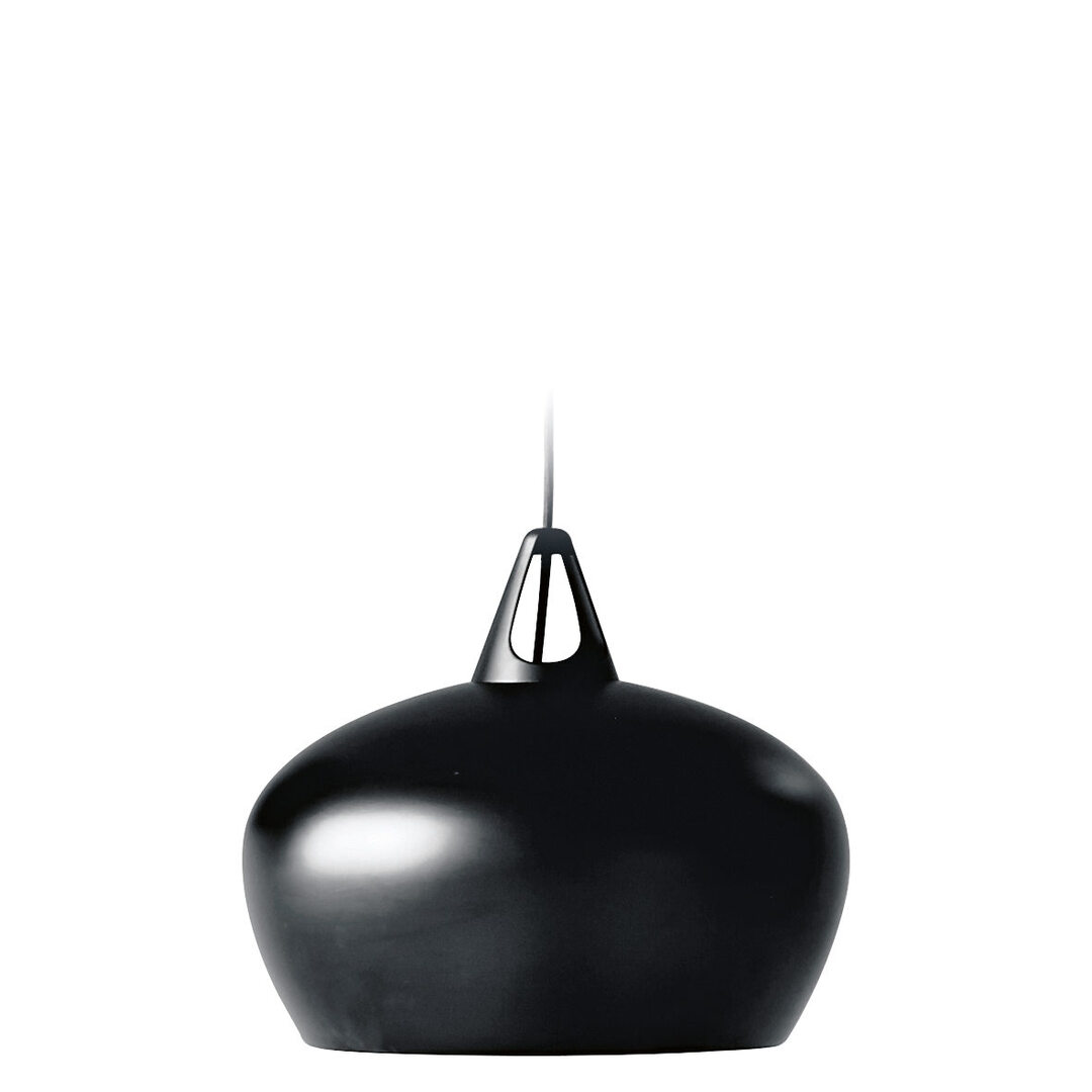 The designers of this pendant luminaire have been inspired by the traditional Japanese teapot. The preference of simple shapes and natural materials is intended to express the common features of Nordic and Japanese design vocabularies. The body is made of semi-matte, black metal and is reminiscent of an archetypical bell. With its appeal of superb craftsmanship, Belly combines the formal concision of its lampshade with the lightness of its suspension.