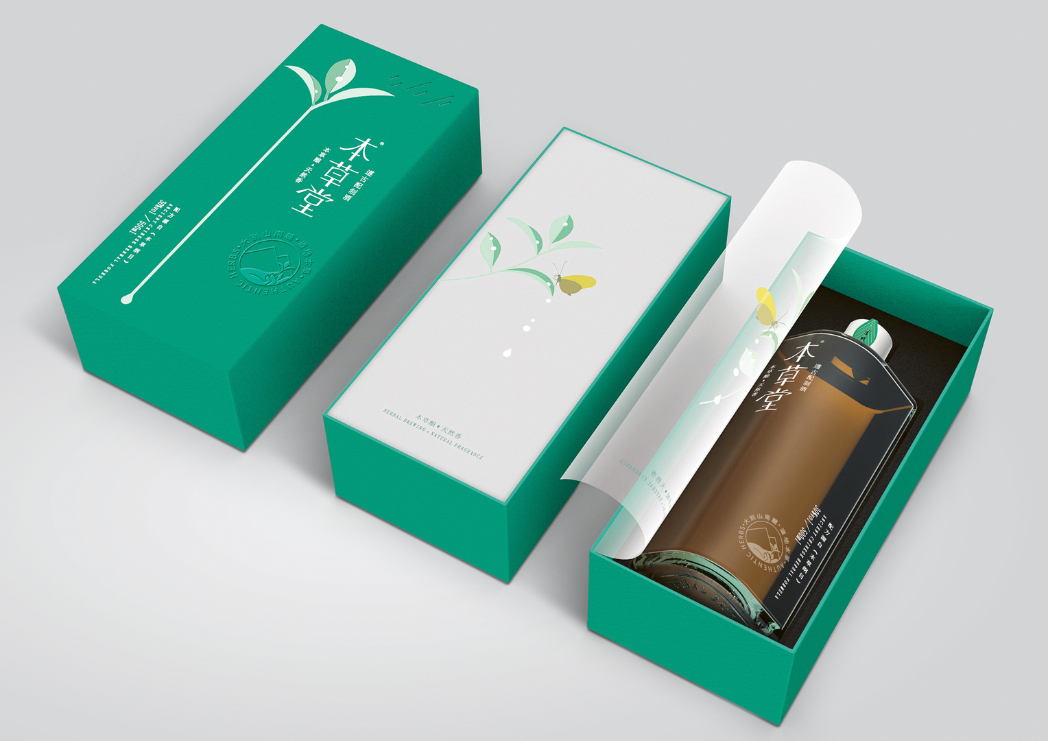 A leaf, a few drops of water, a butterfly and natural colours are the basic elements that make up this packaging, communicating the benefits of traditional herbal wine. Despite the emphasis on natural simplicity, the gift box features elaborate details, such as the unusual, gracefully curved shape of the bottle. The leaf motif returns on the top of the bottle, on a sheet of translucent paper in the box, and on the box itself, creating a harmonious overall appearance. The packaging is rounded off by a leaf-shaped label on the bottle.
