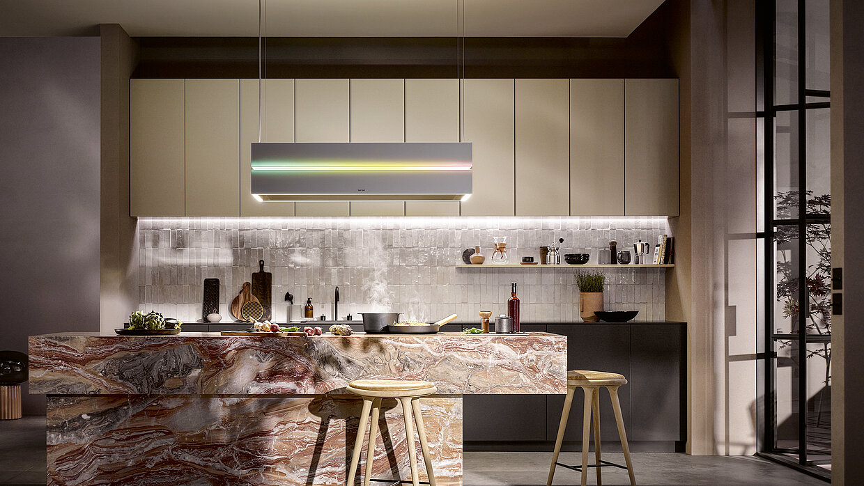 The berbel Downline Infinity convinces with a multitude of innovative details that efficiently support the entire cooking process. The impressively implemented hybrid control gives the user more freedom of choice – and equipped with heavy rotary knobs, operation becomes a haptically pleasant experience. The hob with its clear design and high functionality of the extractor hood is optimally designed for use in open kitchens.