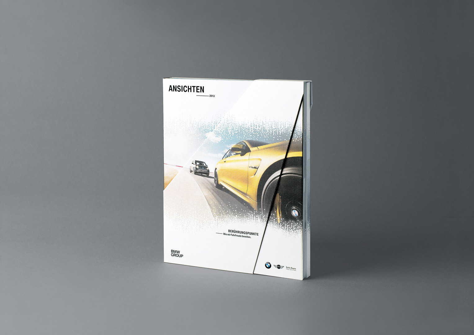 The 2013 BMW Group Annual Report is a pleasure to read in every respect. Taking as a starting point the company’s strategic goal of offering customers premium products and services with emotional value, the conceptual idea of “Touchpoints” was developed. An element of the annual report is a yearbook entitled “Views”, featuring true-to-life portraits of BMW employees. In order to exploit the potential of a printed version to a maximum, the haptics of the annual report were enhanced by the use of surface-treatment techniques.