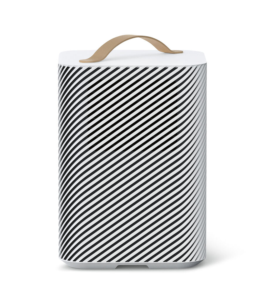 Diagonal ventilation slits, which run around the entire body, lend “Beside” its characteristic appearance, making the air conditioner clearly stand out from comparable technology products. Thanks to the very small compressor and the new layout of the technology inside, “Beside” can be placed anywhere a cool breeze is needed. The simple leather carrying handle is not only a functional detail, but also incorporates an aesthetic stylistic element.