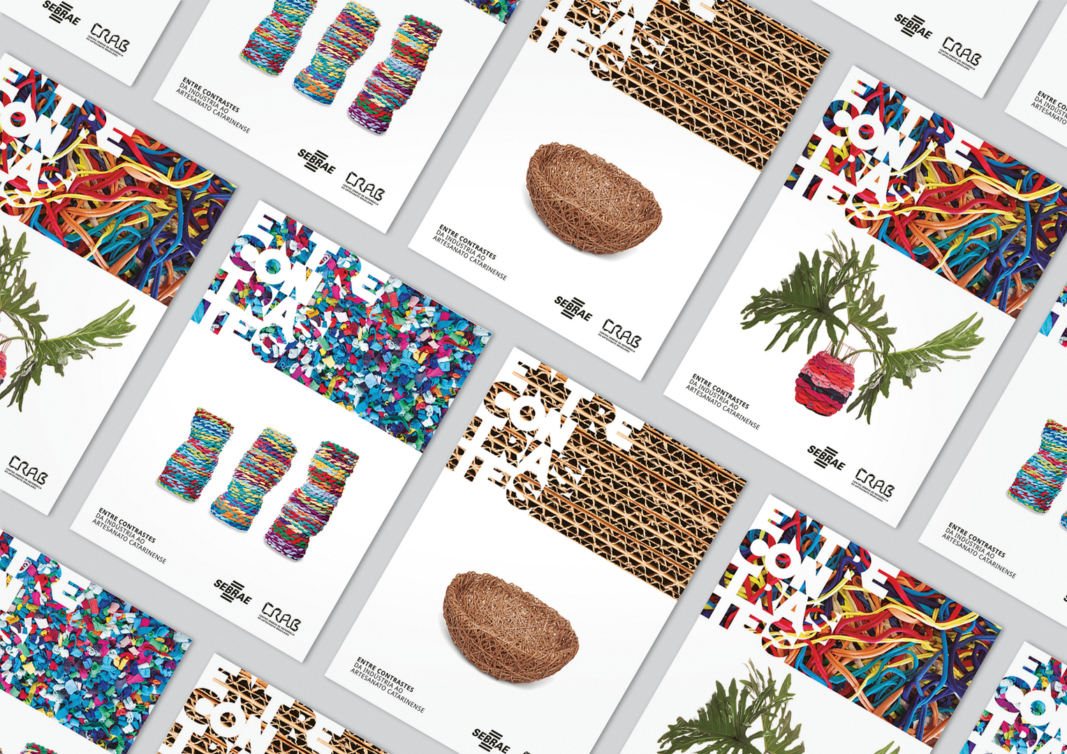 The Entre Contrastes (Between Contrasts) exhibition featured handicrafts made of waste from the textile and paper industry in Brazil. The logo played on the contrasts between the different exhibits, the words being formed through an effect of presence and absence of letters. Black and white stand in contrast to the abundance of colours visible in the handicrafts. The chosen brand design solutions reduced waste at the end of the event. By bringing up concepts such as creative reuse, the exhibition appealed to visitors to reflect on consumption and its consequences for the environment and future generations.