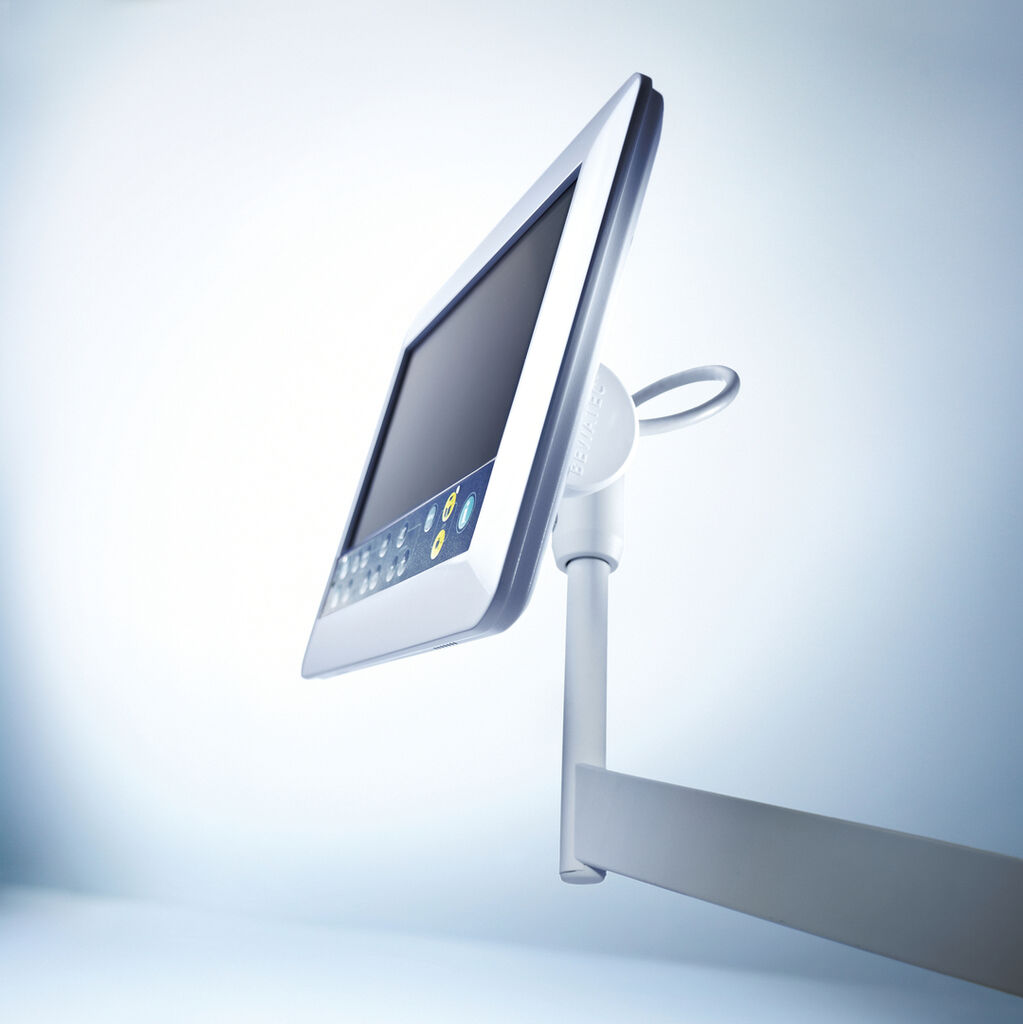 The conceptual design idea for this hospital patient television with integrated media terminal was to convey a familiar, almost homey feel. Inspired by the design of digital picture frames, this monitor features a curved high-gloss frame with an elegant appeal. With regard to the ergonomic needs of hospital patients and to hygiene considerations, the most important functions are controlled via a separate display with membrane buttons. In addition to the hospital’s media package (TV, radio and Internet, if available), patients can play their personal slideshows by plugging in their own USB stick. The monitor therefore also functions as a digital picture frame, integrating a piece of home into the hospital setting.