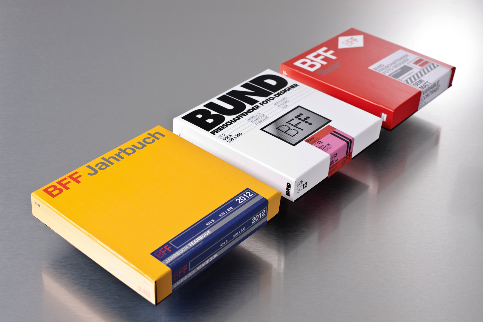 With an unusual packaging design, the BFF yearbook was published as a photo box, in which paper and film used to be provided. In the style of the major manufacturers for photographic materials, KODAK, ILFORD and AGFA, it is available in three different versions, attracting an immense level of attention within the target group. On the inside, it presents a cross-section of current photo design in Germany. As a useful working manual for the industry and a unique photographic art book, it reveals new styles and documents the development of professional photography.
