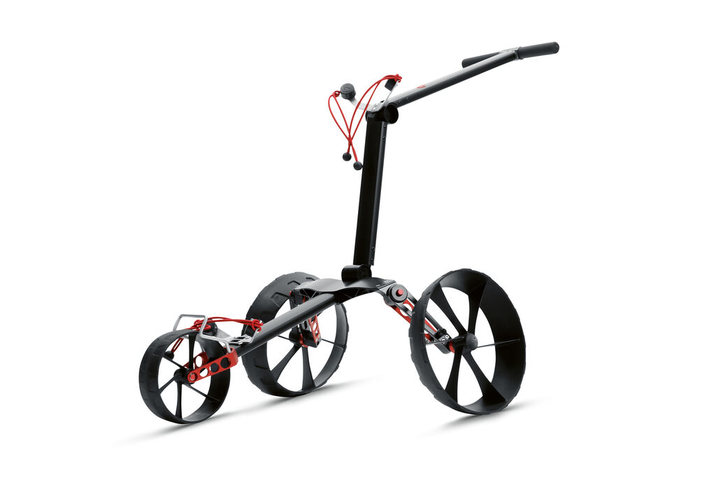 The design of the golf trolley impresses with an elaborate approach, which not only focuses on its important off-road capability, but also on weight and stability.
