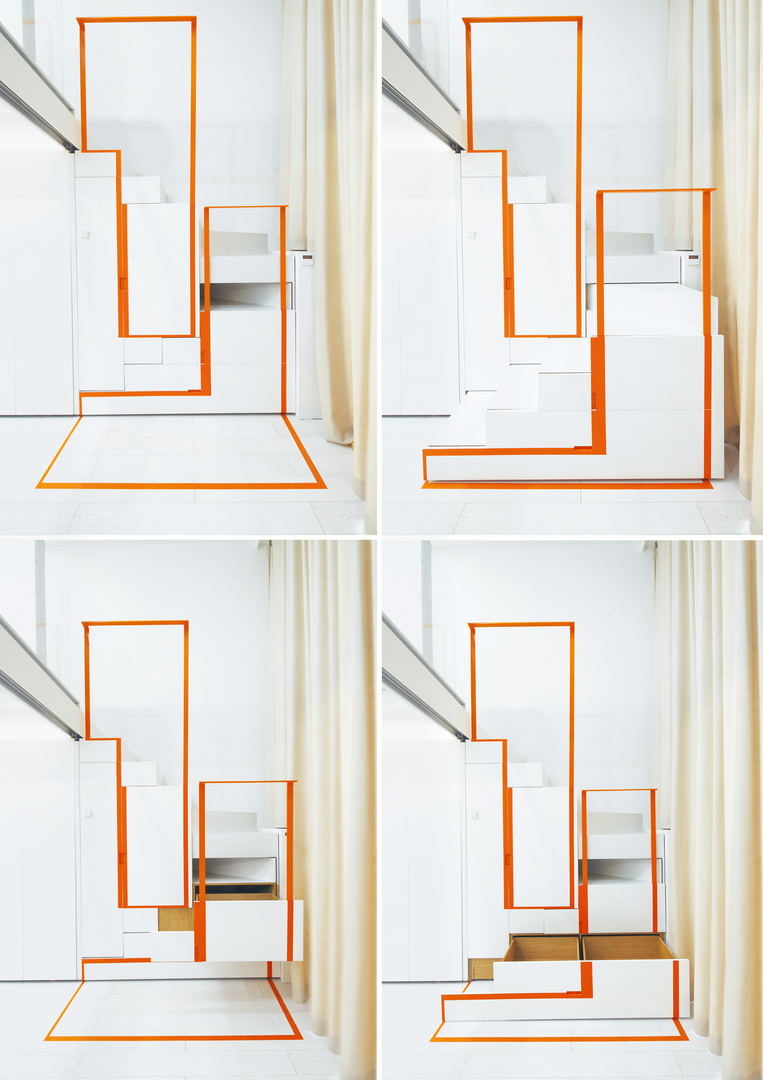 Against the backdrop of an increasing lack of housing space in big cities, the Show Flat Bigger+ visualises the con-cept of a functional “smart convertible space”. As a module-based system, it offers a big variety of spatial possibilities, allowing people to define their own spaces by plugging in 13 different modules. The individual units – including a folding sofa, folding bed, convertible slab, mobile cabinet system and convertible staircase – can be freely arranged within the 40 sqm flat, turning it into a one- or two-bedroom loft or even a party space.