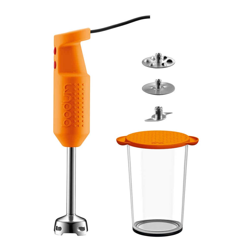 A consistent use of colours and shapes characterises the appearance of the Bistro electric blender stick. As a 2-speed blender, the handy kitchen utensil was made of stainless steel and equipped with a synthetic body. Matching the mixer, three different knives and a high mixing vessel with silicone lid are available. The blender shows a striking knop pattern which not only provides for a recognition value but also suppports the comfortable grip of the material. The mixer set is very versatile and available in many different colours. A high degree of functionality facilitates the preparation of soups, drinks and children’s food. By pressing a button, diverse ingredients are pureed quickly and reliably. Furthermore, the heat-resistant hand blender can be used directly in pots, pans, glasses and bowls. After use, the blender can be effortlessly cleaned in hot water.