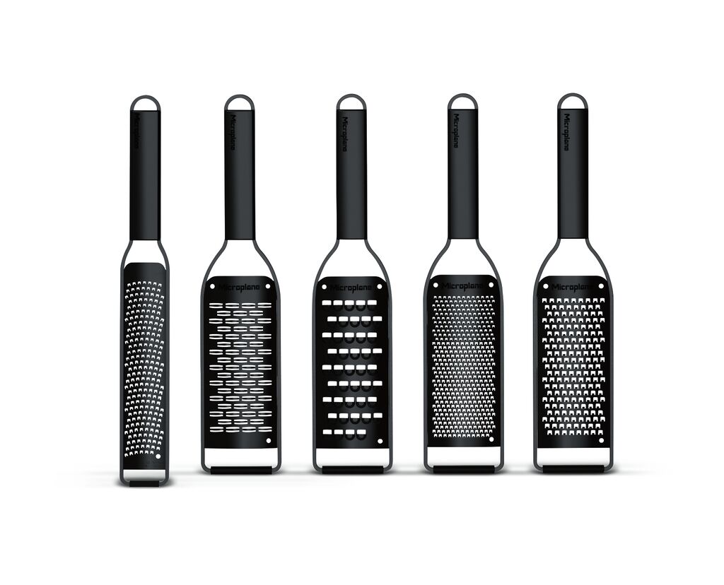 With their highly functional details, these graters are particularly effective in use. The matt-black finish adds to the distinctive overall look.