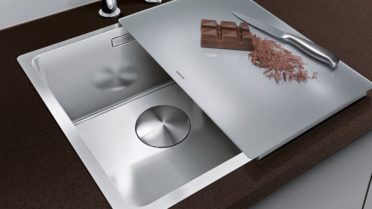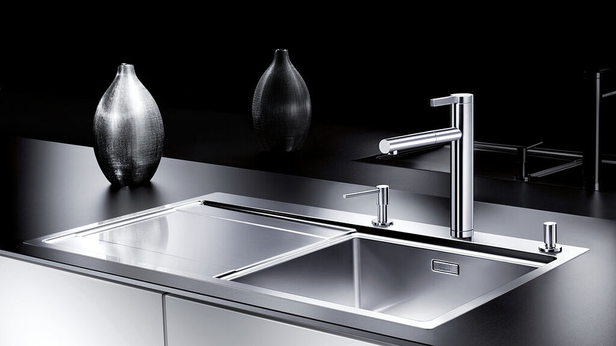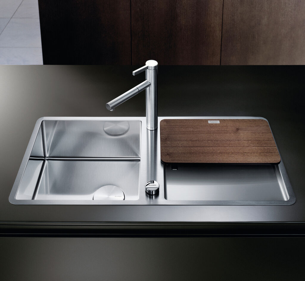 Sensuous minimalism and strictly geometric lines characterise the appearance of the Blanco Jaron XL 6 S-IF elegant stainless steel sink.