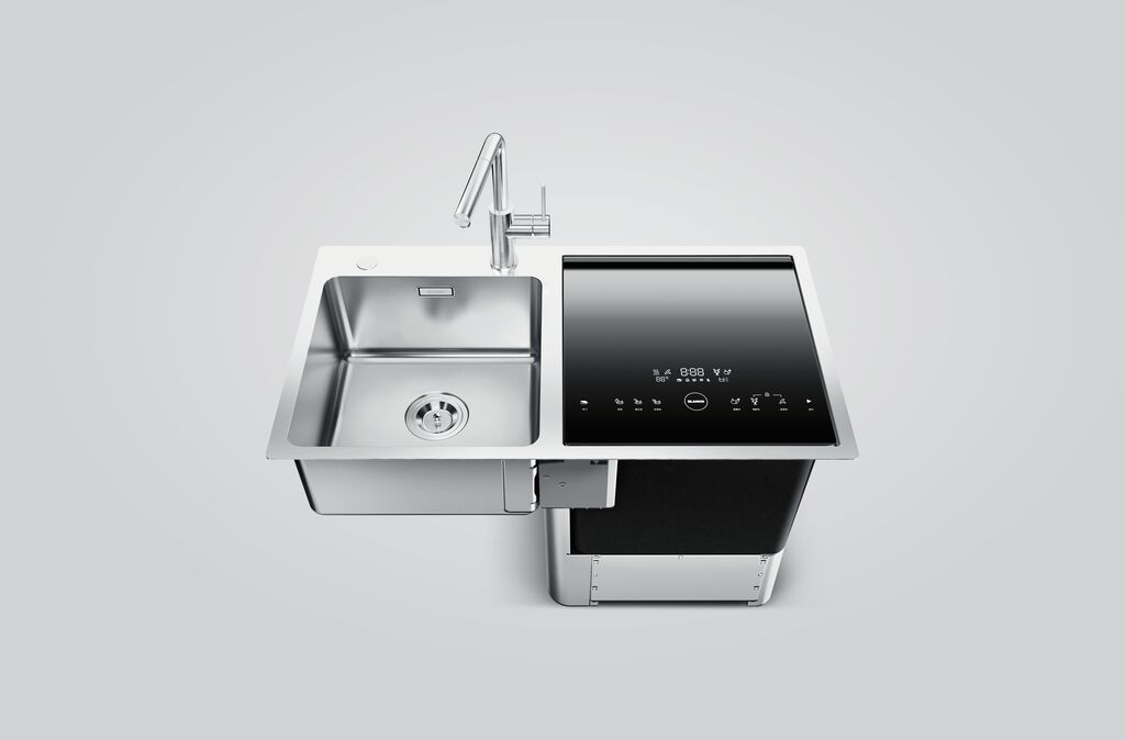 BLANCO VITA Neo is designed for the Chinese market and combines a high-quality stainless-steel sink with a top-loading dishwasher. This offers antibacterial cleaning functions for dishes but also for vegetables and seafood. A black glass lid serves as a cover, in which an intuitive touch display is incorporated. Low water consumption and low noise levels ensure a sustainable user experience.