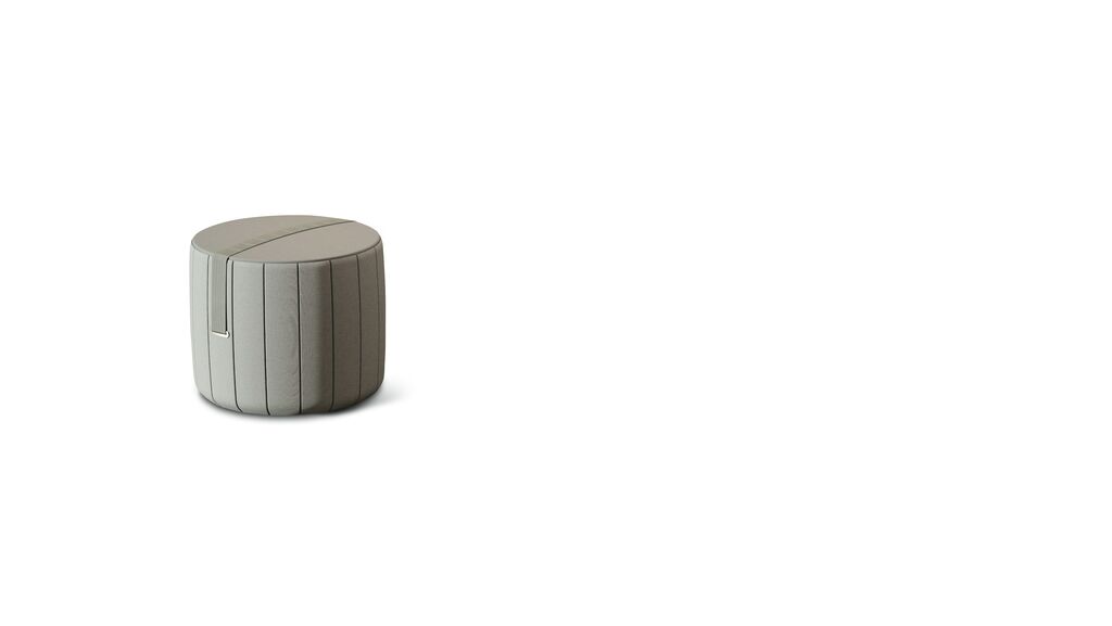 Blue Sky Lab Pouf is designed to create a comfortable living environment and promote a sustainable lifestyle. The stools are made of recycled materials and of airbag fabric, metal and leather residues from the automotive industry. They have a modern design language defined by a smooth seat and vertical seams on the outside. A practical carrying handle also adds a visual accent.