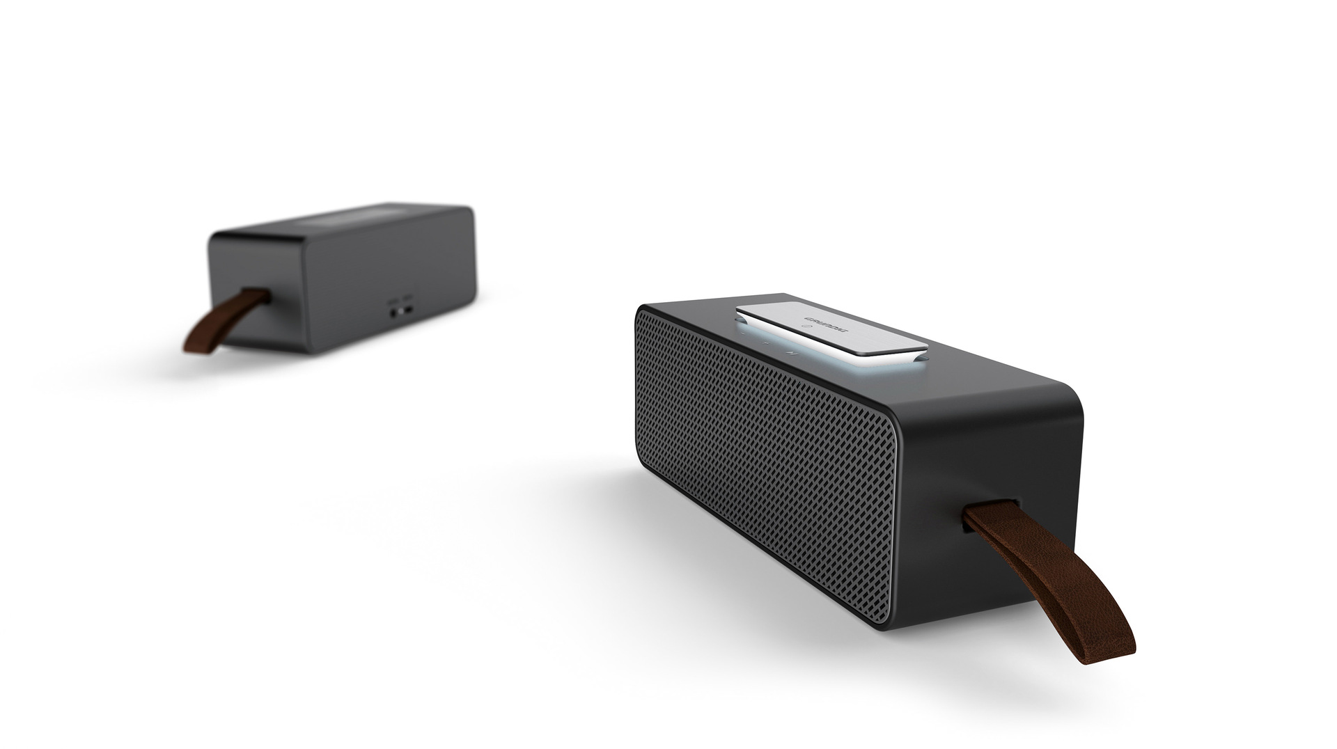 This wireless Bluetooth speaker impresses with its plain, straightforward design and illumination that accentuates the large metallic switch. The varying light also indicates the battery-charging status. The speaker is small and lightweight and can thus be effortlessly taken along from room to room or used outdoors. Its minimalist design with metal and leather details results in a refined look. Moreover, it includes hands-free functionality and touch-sensitive volume control. With just one touch, compatible devices are paired via NFC.