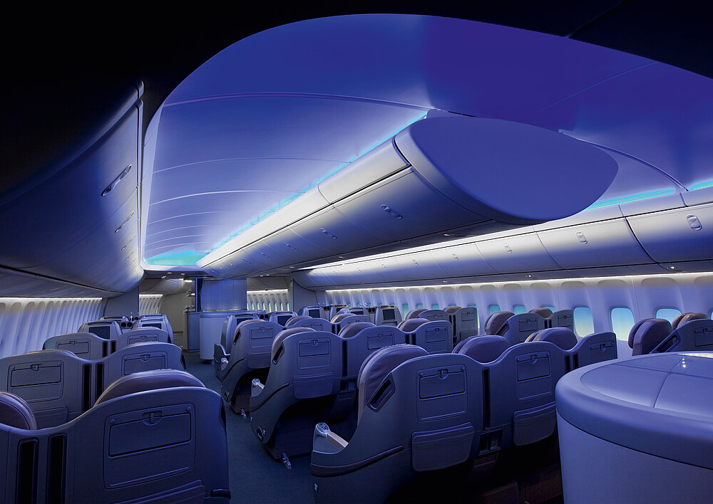 The consistently curved, organic lines of all components in the wide-body cabin of this aircraft impressed the jury, for it is a design that provides passengers with a high degree of travelling comfort.