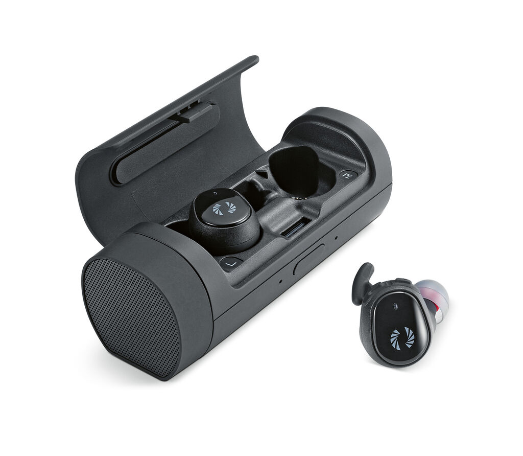 The BOLT BT 700 wireless earbuds are IPX4 sweat- and water-resistant and feature balanced armature drivers for a rich, detailed sound. The compact charging speaker case can charge the earphones up to three times for a total of 20 hours of playtime, while its quick charge feature allows for one hour of music playing from just a 15-minute charge. Touch-sensitive buttons in the earbuds allow for music and call control, and access to Siri and Google Assistant. Plus, two mics on each earbud deliver crystal-clear phone quality and audio transparency to hear one’s surroundings.