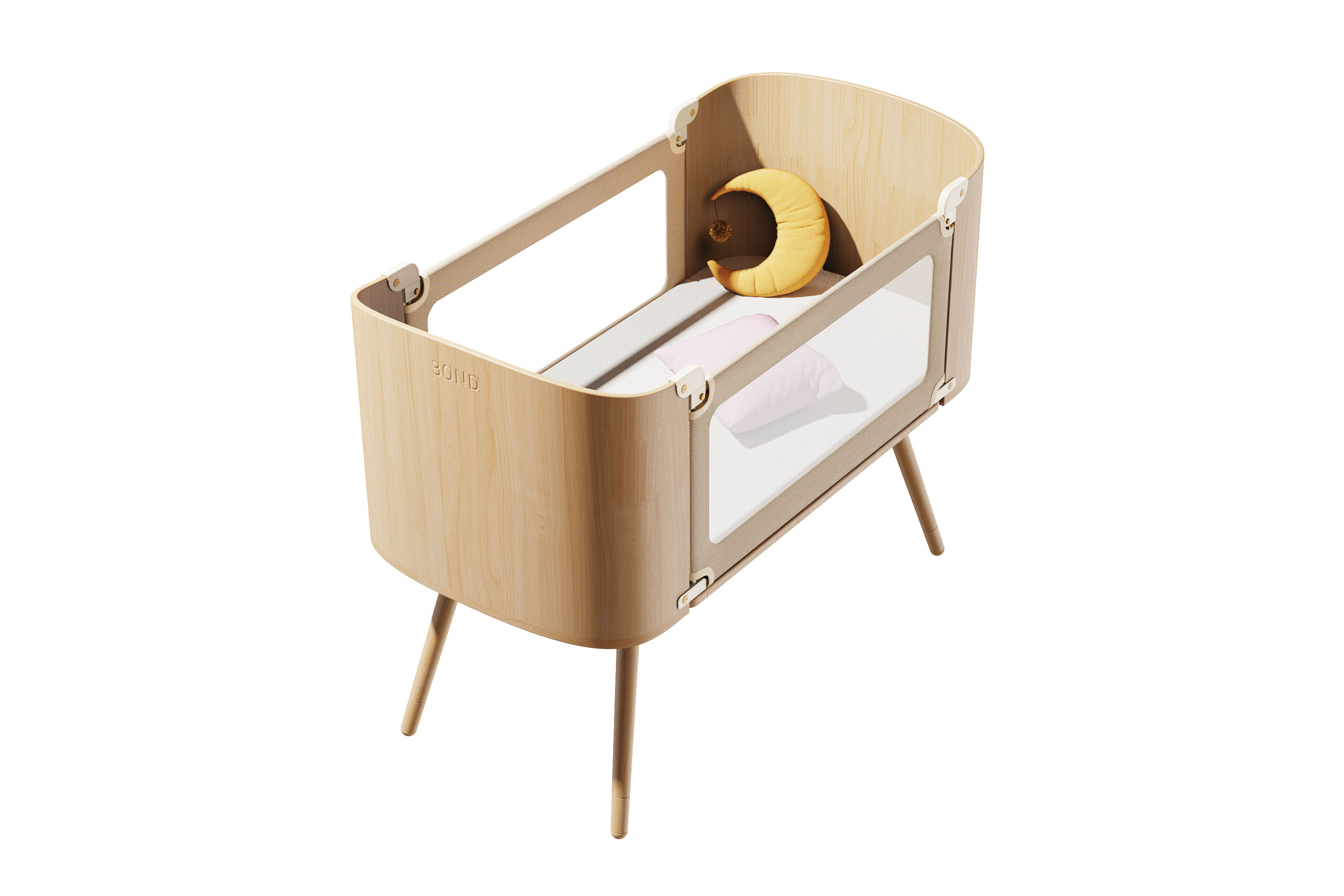 Bond is a solid wood crib that makes the distance between parents and babies safer and more harmonious by cleverly integrating the need for sustainable growth. In the newborn stage, the adjustable guardrail design provides a safe and comfortable independent sleeping space for the infant. At the same time, it facilitates parents in accompanying the baby with 'zero distance' to avoid possible suffocation risks. When the infant grows up, the small bed can be elegantly transformed into a toy storage basket and early education table, serving as good companions in the baby's growth and education. The beech material used in Bond is specially selected to be a safe and environmentally sustainable material for the baby through their growth stages. Red Dot Award: Design Concept | Red Dot: Next Gen Award | Concept | Babies and Children