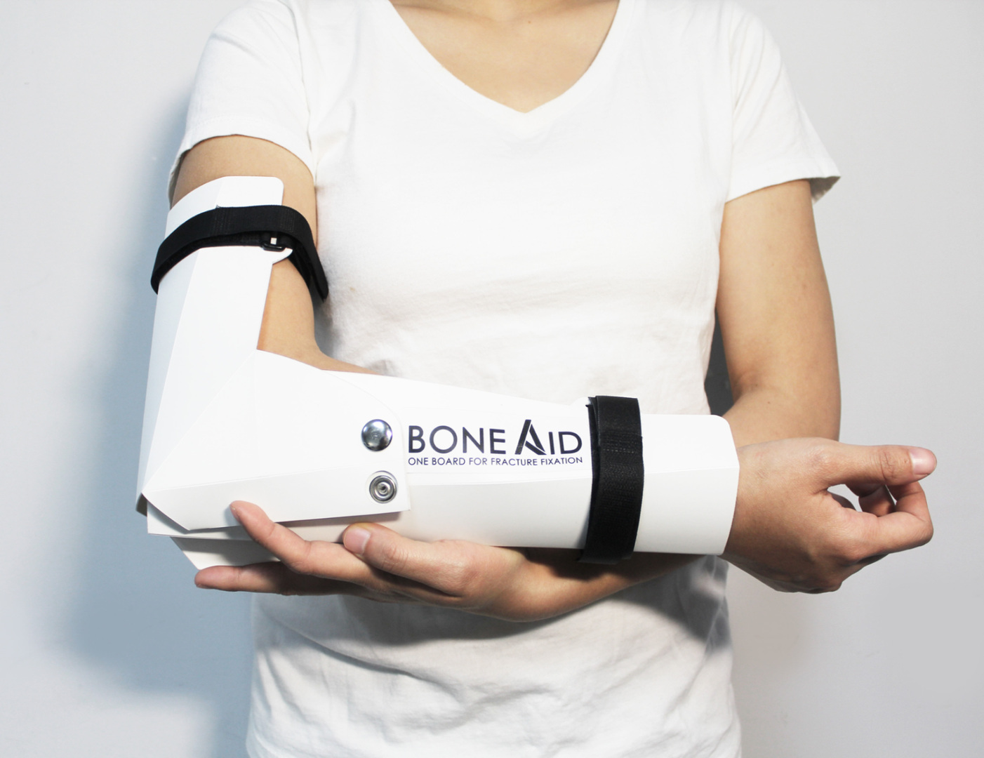 BoneAid is a flat-packed board for fixing fractures. It is a simple design for fixing arms, legs and ankles fracture. It can be deployed to disasters or in developing regions with insufficient medical resources. To satisfy three different conditions of a fracture, BoneAid can change its structure via a folding crease on the board